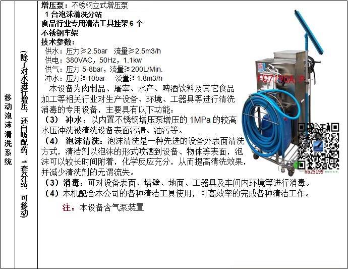 该机械专业用以食品工厂机器,食品加工设备,装配线,传动链/皮带,不锈钢工作台,周转箱,不锈钢器皿等的清洁和消毒;专业的泡沫清洗设备。